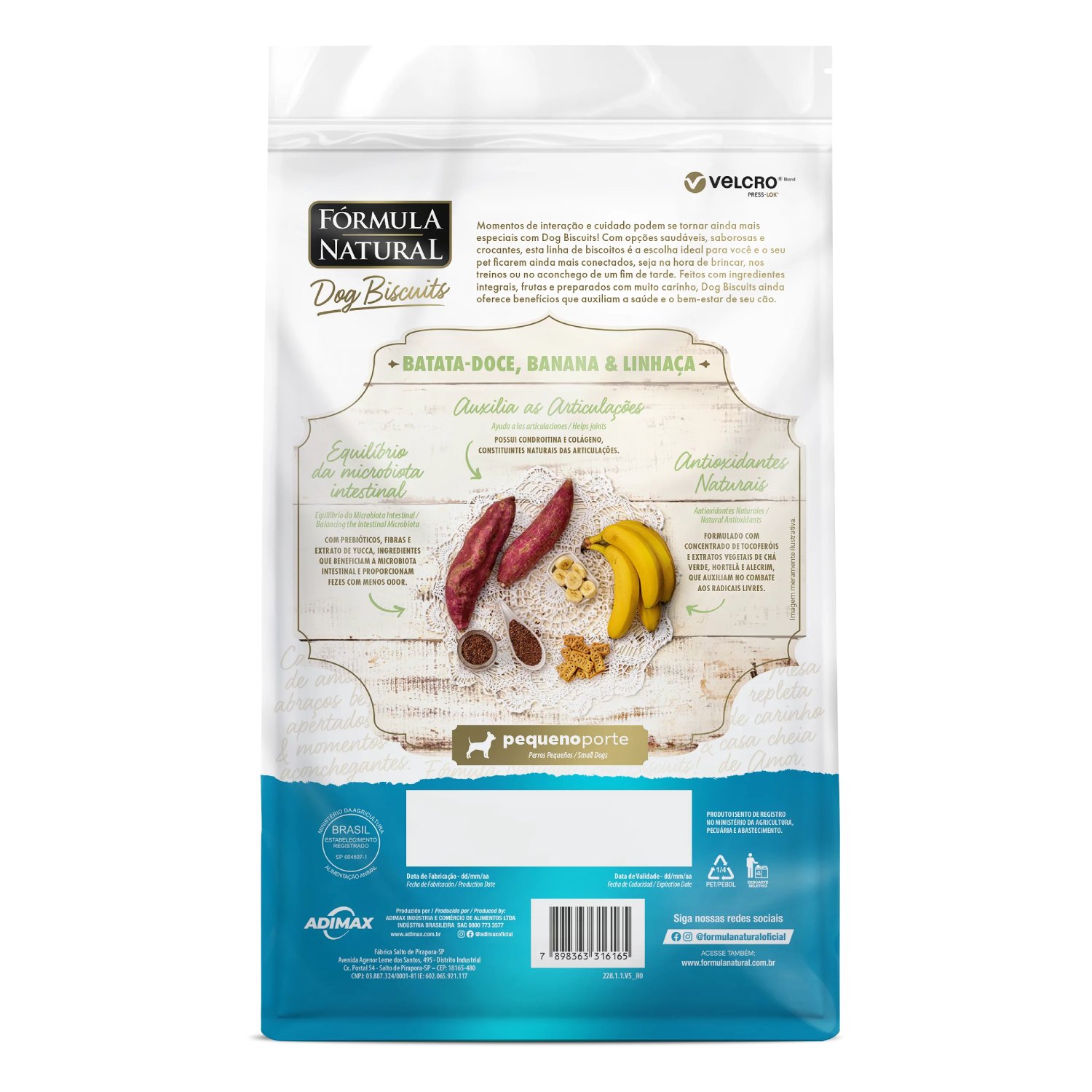 Biscoito Fórmula Natural para Cães Raças Pequenas Sabor Batata-Doce, Banana e Linhaça 250g