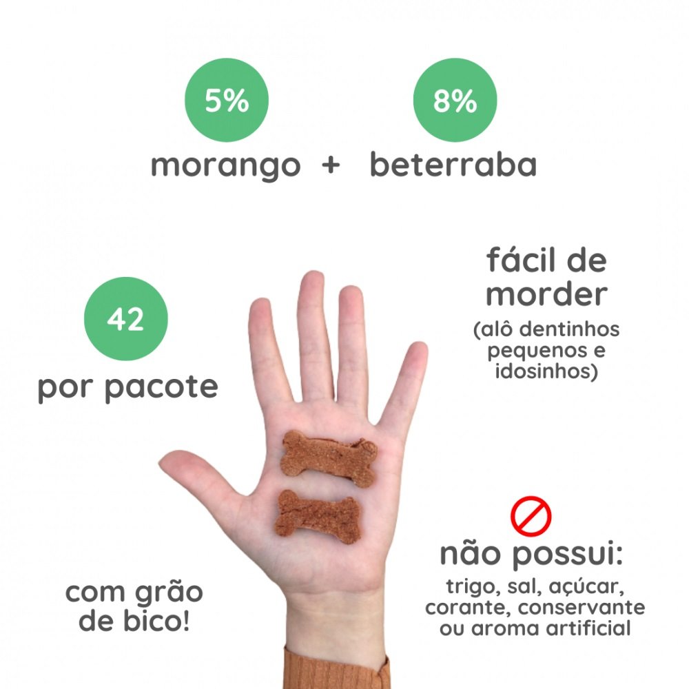 O Biscoito Instinto Natural para Cães Sabor Morango e Beterraba têm um cheirinho irresistível sem precisar usar aromas artificiais, conservantes ou antioxidantes cancerígenos. Livre dos principais alimentos que causam alergias e sensibilidade, os biscoitos servem como hipoalergênico e contém uma quantidade ABSURDA de frutinhas!
