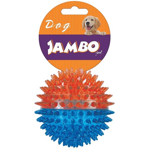 BRINQUEDO BOLA TPR M ESPINHO DUAL AZUL E LARANJA JAMBO PET