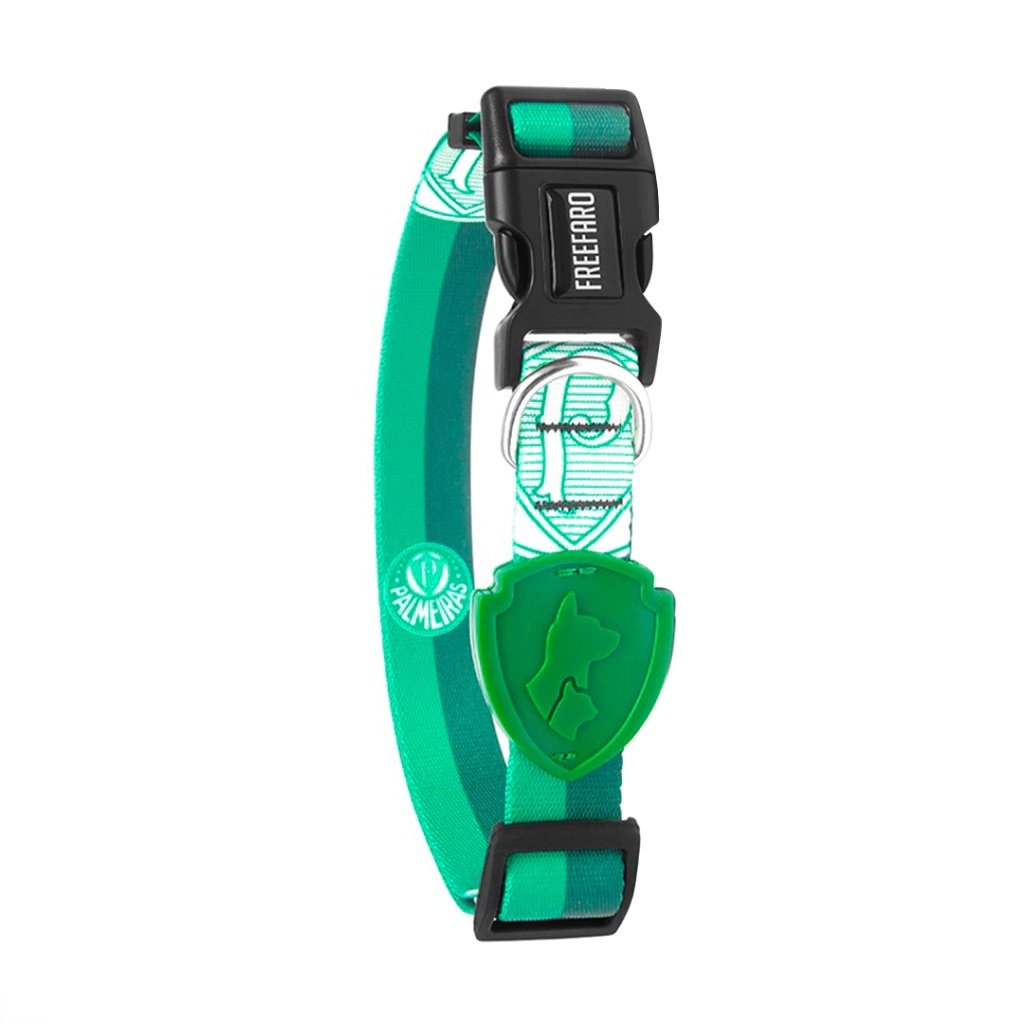 Agora seu pet se vestirá de Palmeiras. O clássico e elegante clube de São Paulo faz parte da © FreeFaro Team, uma coleção exclusiva e desenvolvida a partir dos elementos principais do clube. Por isso a fita (elemento principal dos acessórios) carrega o escudo Palmeiras e sua história em diferentes tons de verde. Nossa Coleira é projetada para ter conforto. Ela é ajustável e se encaixa perfeitamente ao pescoço do seu pet, trazendo segurança no momento do passeio.