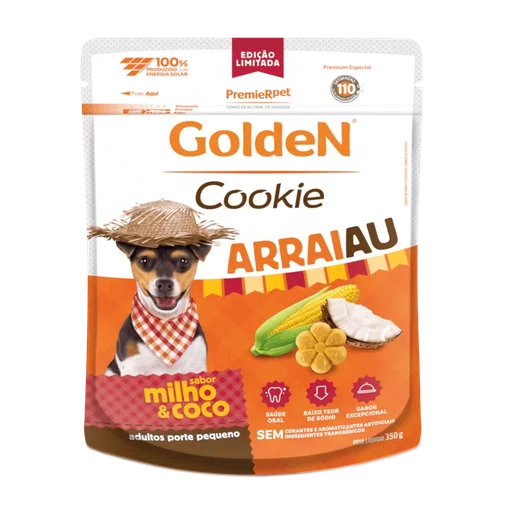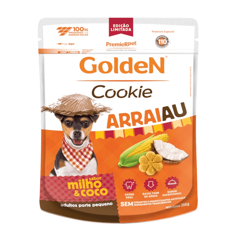Golden Cookie Arraiau Cães Adultos Raças Pequenas sabor Milho e Coco 350g