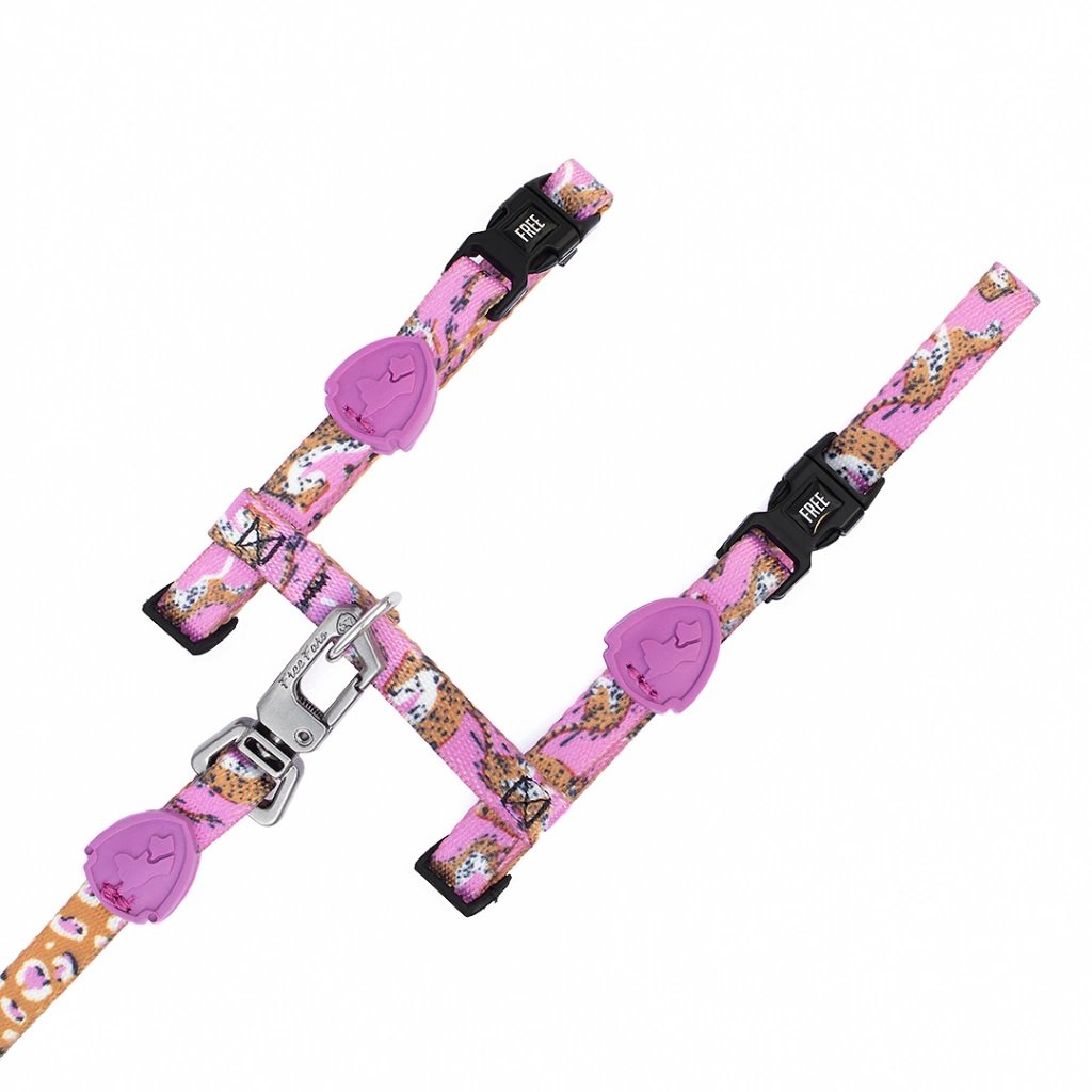 A Collab entre FreeFaro e Zinco (Clube Morena Rosa) traz uma estampa dupla face única, fashion e ousada. Seu lado principal na cor rosa, carrega poses diferentes de um dos animais mais fascinantes que existe, o Leopardo, que em contrapartida no verso da estampa, se revela com suas pintinhas transformadas em uma estampa fofa e ao mesmo tempo elegante.