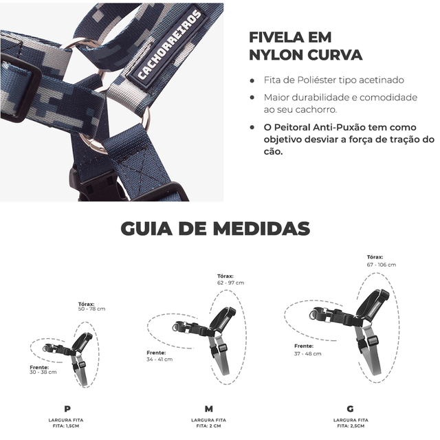 Dimensões dos Peitorais Anti Puxão Cachorreiros