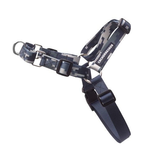 A Guia Peitoral Cachorreiros Anti Puxão Camuflada Cinza para Cães tem como objetivo desviar a força da tração do cão.
