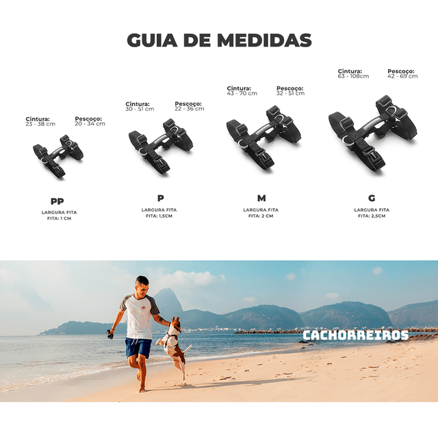 | Tamanho | Largura da fita | Pescoço | Cintura |