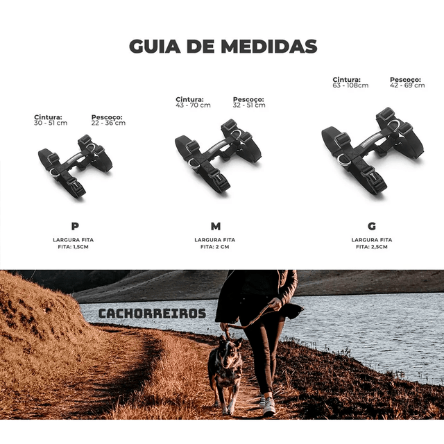 | Tamanho | Largura da fita | Pescoço | Cintura |