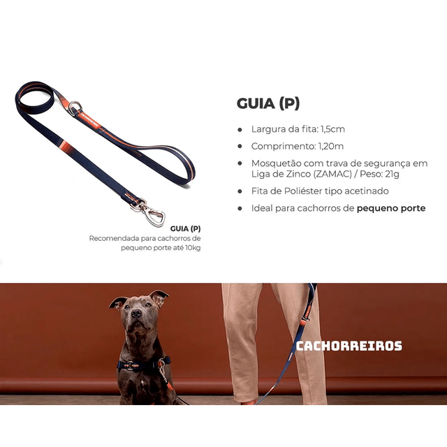A Guia Tradicional Cachorreiros Bob e Marley para Cães conta com alça Super confortável em Neoprene e um sistema exclusivo Cachorreiros® encurta guia. Mosquetão com trava de segurança em Liga de Zinco (ZAMAC).