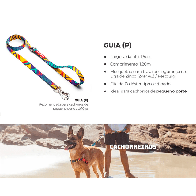 A Guia Tradicional Cachorreiros T-Mutts para Cães conta com alça Super confortável em Neoprene e um sistema exclusivo Cachorreiros® encurta guia. Mosquetão com trava de segurança em Liga de Zinco (ZAMAC).
