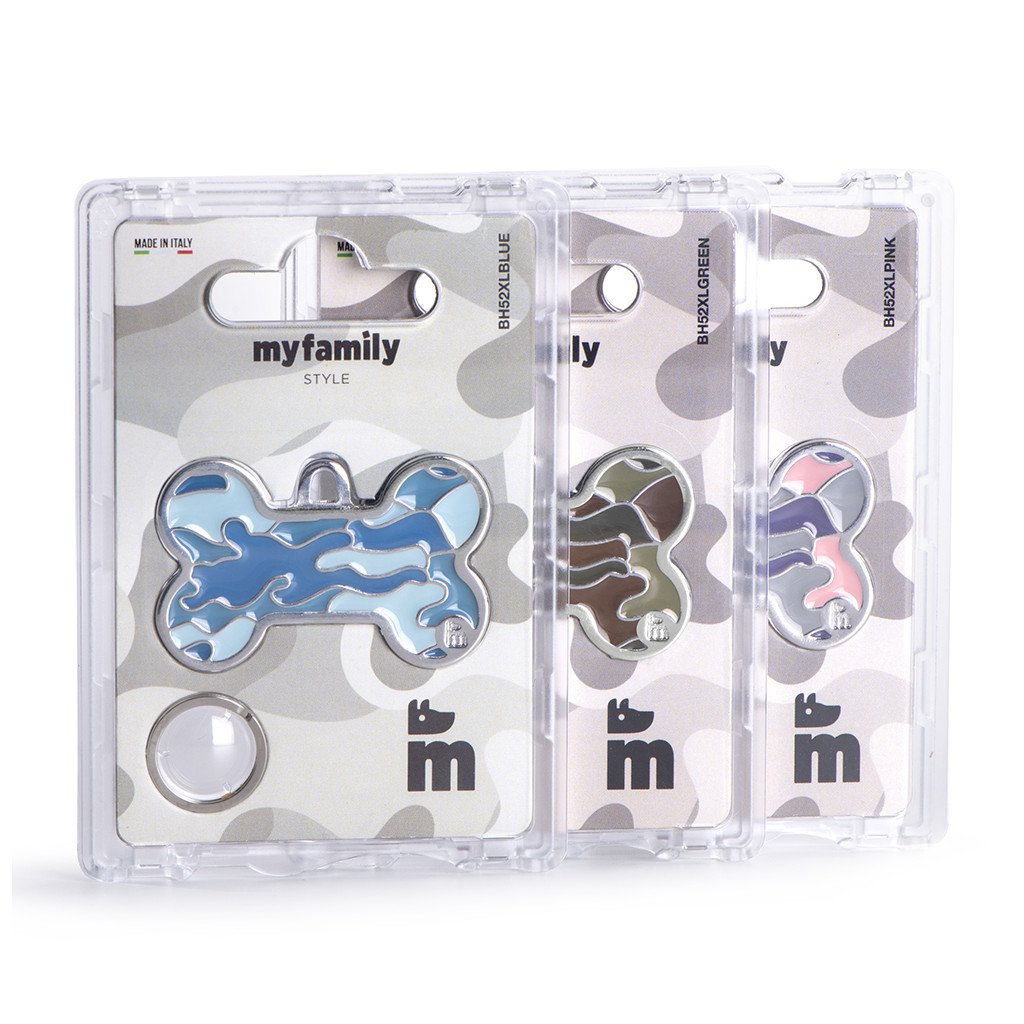 Na clássica versão verde militar, mas também nas mais extravagantes rosa e azul, o modelo Camouflage da coleção Style permite que todos os animais de estimação se misturem sem passar despercebidos. Uma das tramas que ficou famosa pelo mundo da moda e pelo movimento Pop Art, é reinventada desta vez nas tags MyFamily para amigos de quatro patas, cada detalhe é acabado à mão na Itália.