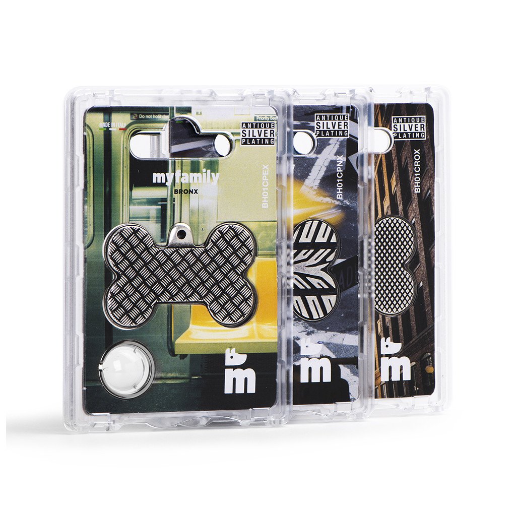Cada item da coleção Bronx é um exemplo único, acabado à mão e aperfeiçoado com um elegante revestimento de prata antigo. As pequenas irregularidades na superfície das etiquetas são a prova do processo artesanal que as torna produtos autênticos. A coleção Bronx é caracterizada por várias tramas e decorações que espalham a verdadeira alma urbana dos subúrbios americanos. Feito na Itália