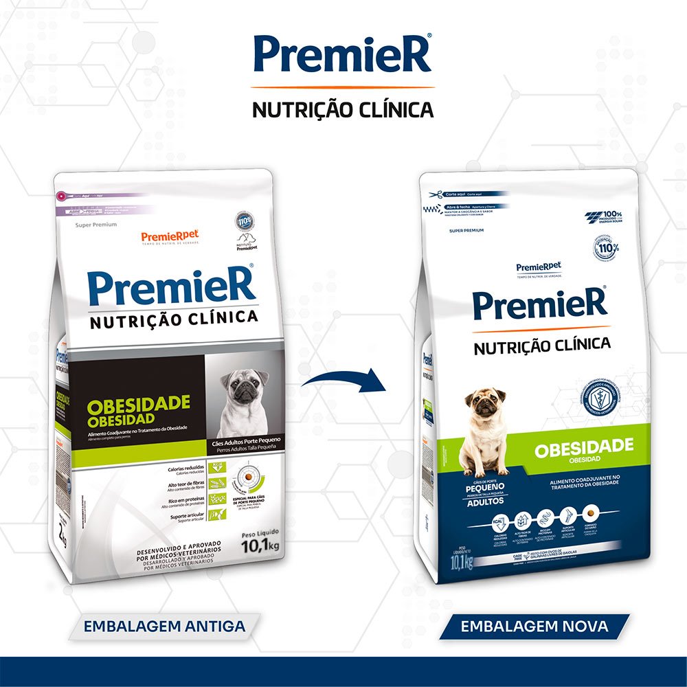 A Ração Premier Nutrição Clínica Obesidade para Cães Adultos Raças Pequenas é um alimento auxiliar ao tratamento da obesidade em cães adultos de pequeno porte. Além do tratamento prescrito pelo médico veterinário, a alteração na alimentação é fator primordial para o tratamento da obesidade. Os objetivos da dieta são: promover perda de peso efetiva e saudável, com Manutenção de massa magra e suporte articular. Para obesidade, este alimento deve ser utilizado sob orientação de um profissional, até que o animal atinja o peso ideal.