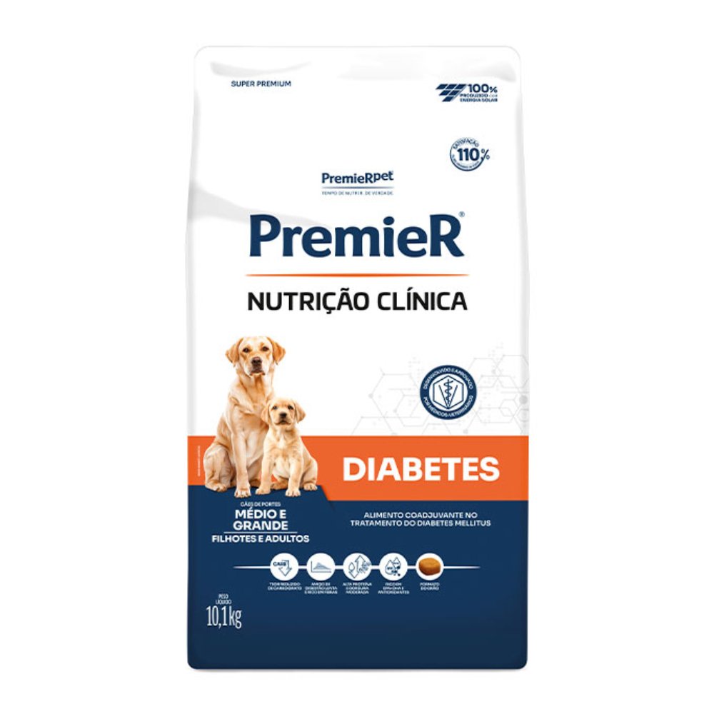 A Ração Premier Nutrição Clínica Diabetes para Cães Adultos Raças Médias e Grandes é um alimento auxiliar ao tratamento da diabetes mellitus em cães adultos de médio ou grande porte. Além do tratamento prescrito pelo médico veterinário, algumas alterações na alimentação podem ser benéficas para pacientes com diabetes. Os objetivos da dieta são: colaborar para o controle da glicemia, auxiliar na Manutenção de massa magra e do peso corporal ideal e modular os processos inflamatórios, minimizando-os. Para diabetes mellitus, este alimento deve ser utilizado sob orientação de um profissional, como único alimento por toda a vida do animal.