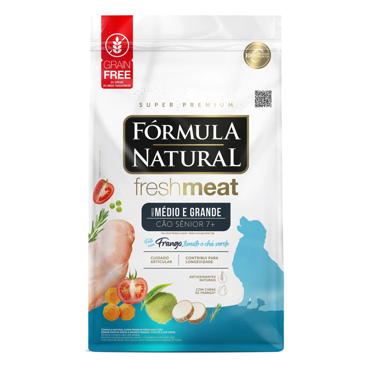 Ração Fórmula Natural Freshmeat para Cães Sênior Raças Médias e Grandes Sabor Frango e Tomate 12Kg