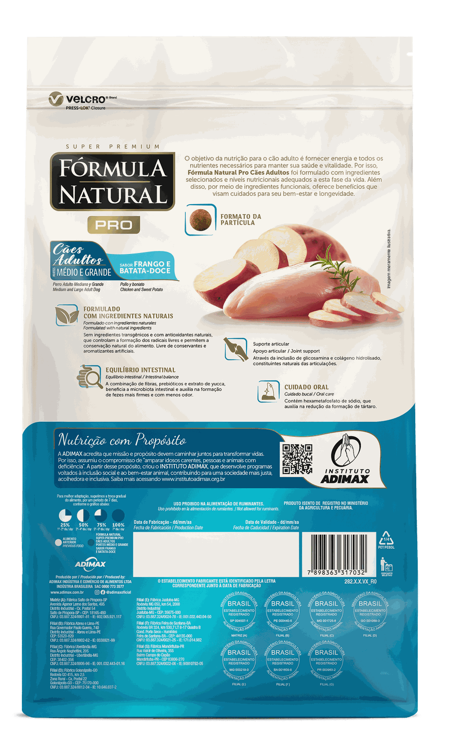 Ração Fórmula Natural Pro para Cães Adultos Raças Médias e Grades Sabor Frango e Batata-Doce 15Kg