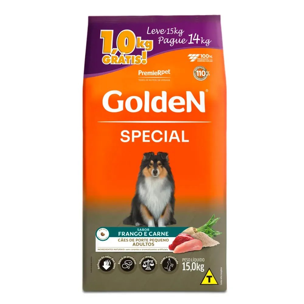Ração Golden Special para Cães Adultos Raças Pequenas Sabor Frango e Carne Pague 14 Leve 15Kg