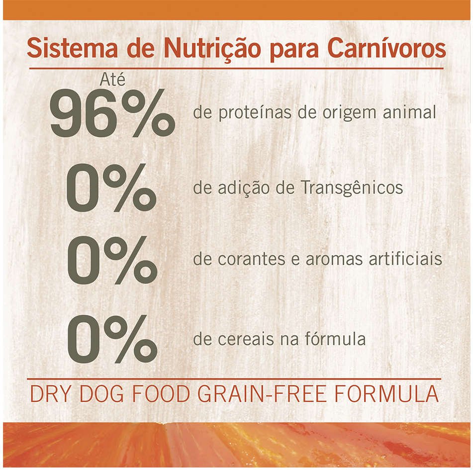 - Dieta completa e balanceada, até 96% de proteínas de origem animal.