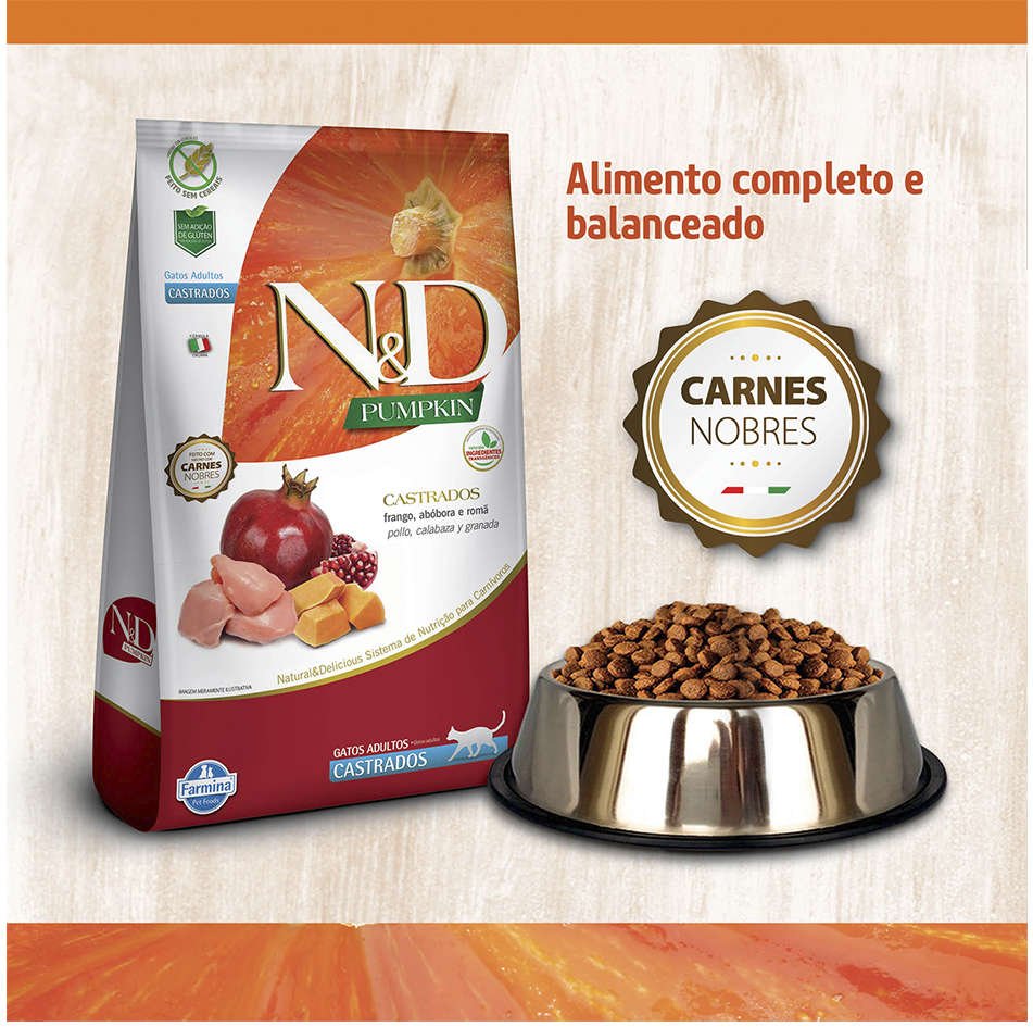Ração N&D Pumpkin para Gatos Castrados Sabor Frango, Abóbora e Romã 1,5Kg
