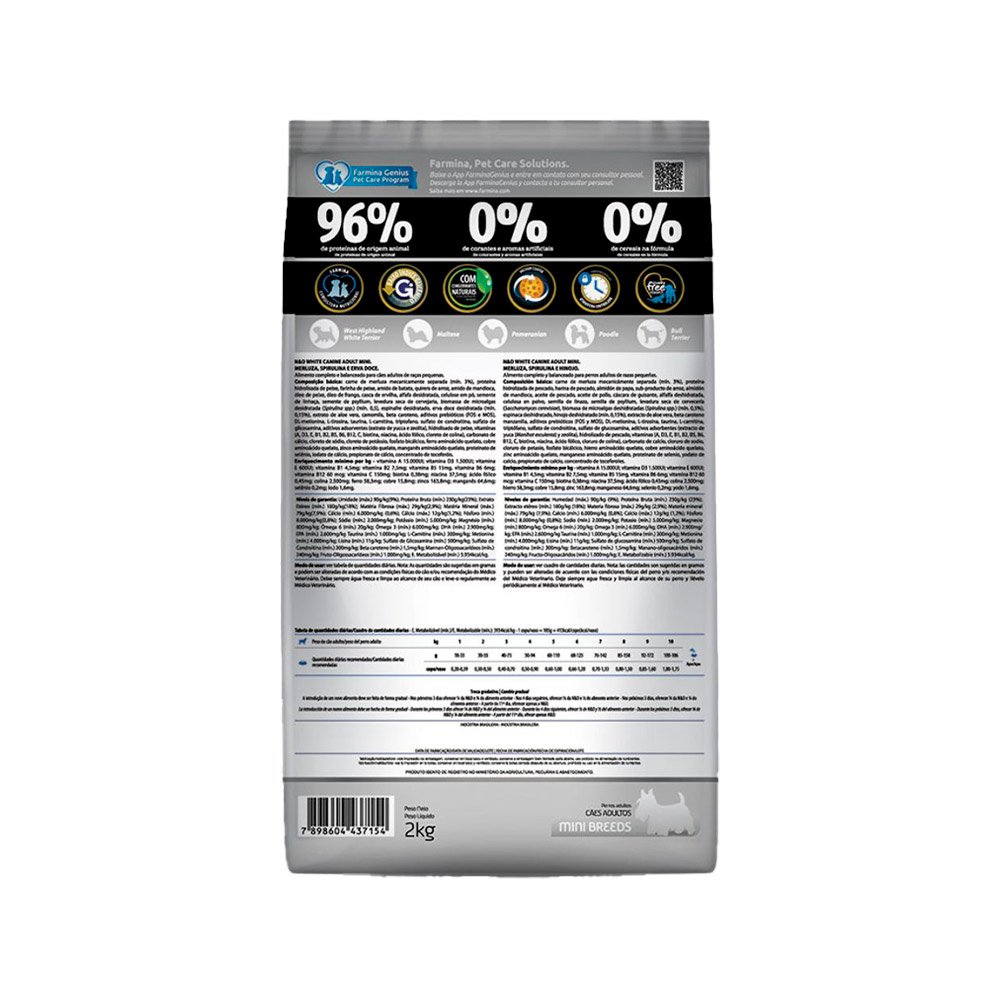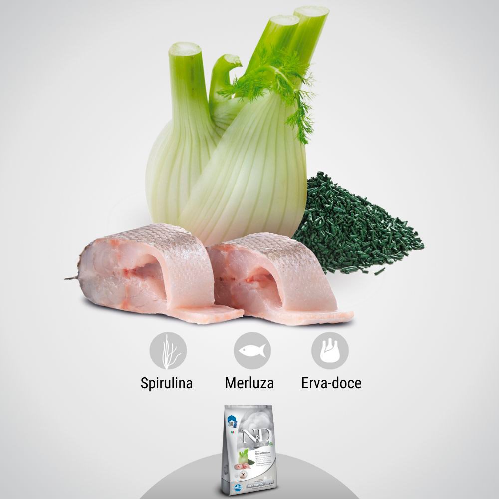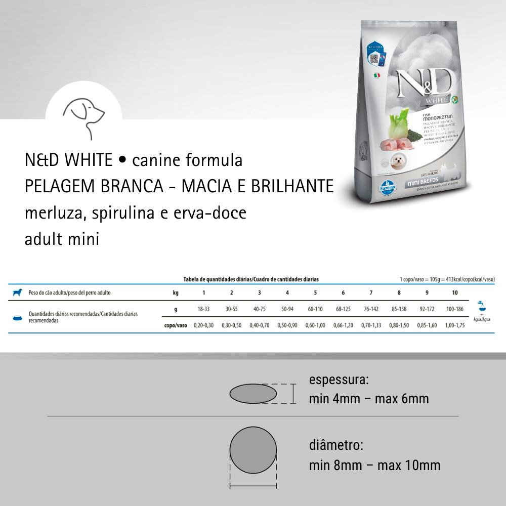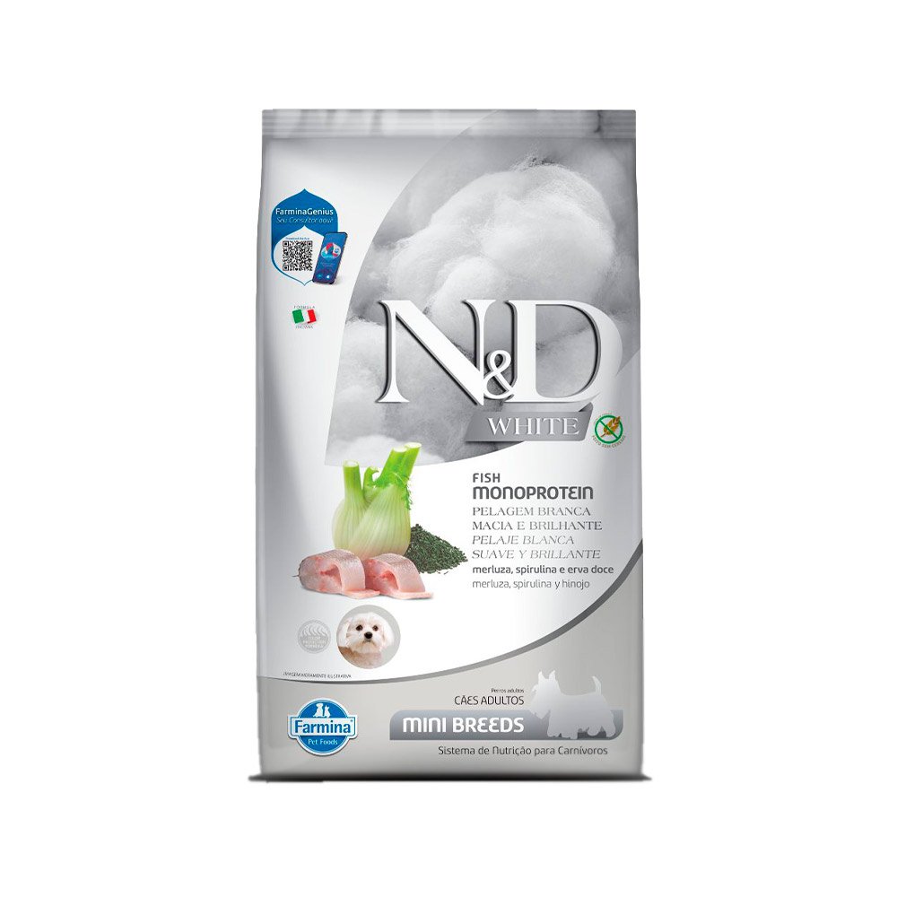 Ração N&D White para Cães Adultos Raças Pequenas Sabor Merluza, Spirulina e Erva Doce 2Kg