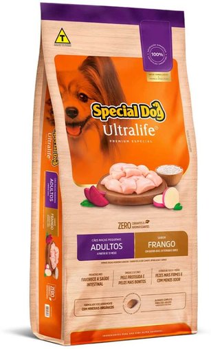 A Ração Special Dog Ultralife Frango e Arroz para Cães Adultos Raças Pequenas é completa, balanceada e da linha Premium Especial que é uma das melhores. Exclusiva para cães de pequeno porte, elaborada por veterinários, possui fontes proteicas de alta qualidade, prebióticos e fibras para o perfeito funcionamento do intestino. É enriquecida com farinha de batata doce e farinha de carne, promovendo a manutenção essencial para essa fase da vida do pet.