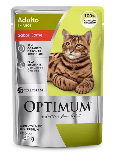 Sachê Optimum para Gatos Adultos Sabor Carne 85g