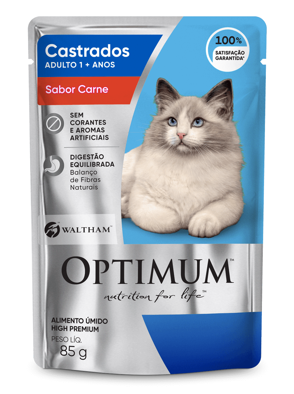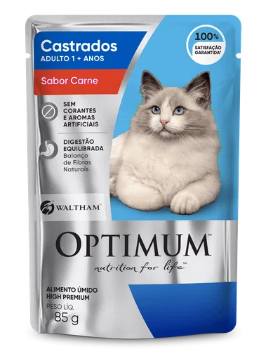Sachê Optimum para Gatos Castrados Sabor Carne 85g