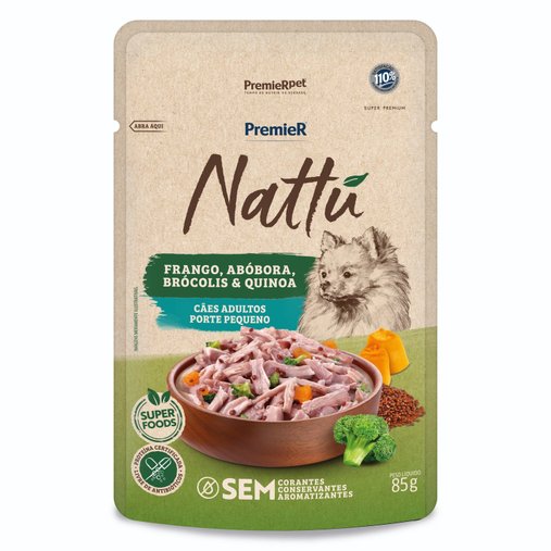Sachê Premier Nattú para Cães Adultos Raças Pequenas Sabor Frango e Abóbora 85g