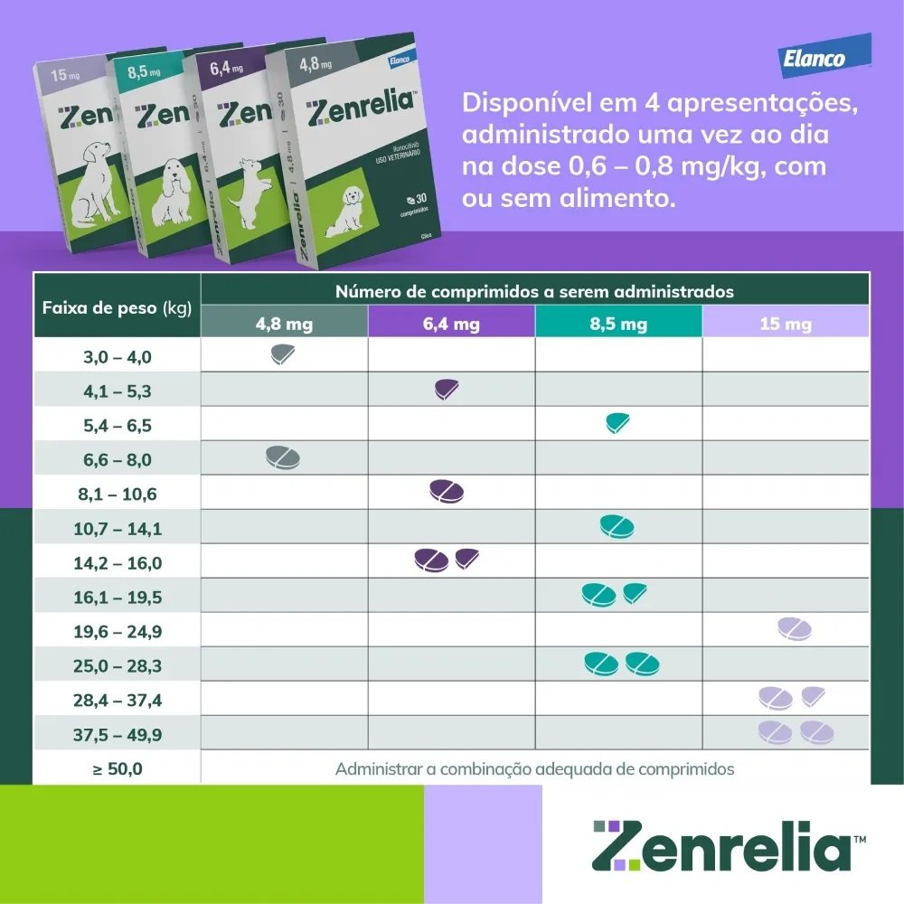 Tratamento Dermatológico Elanco Zenrelia para Cães 30 Comprimidos 15mg