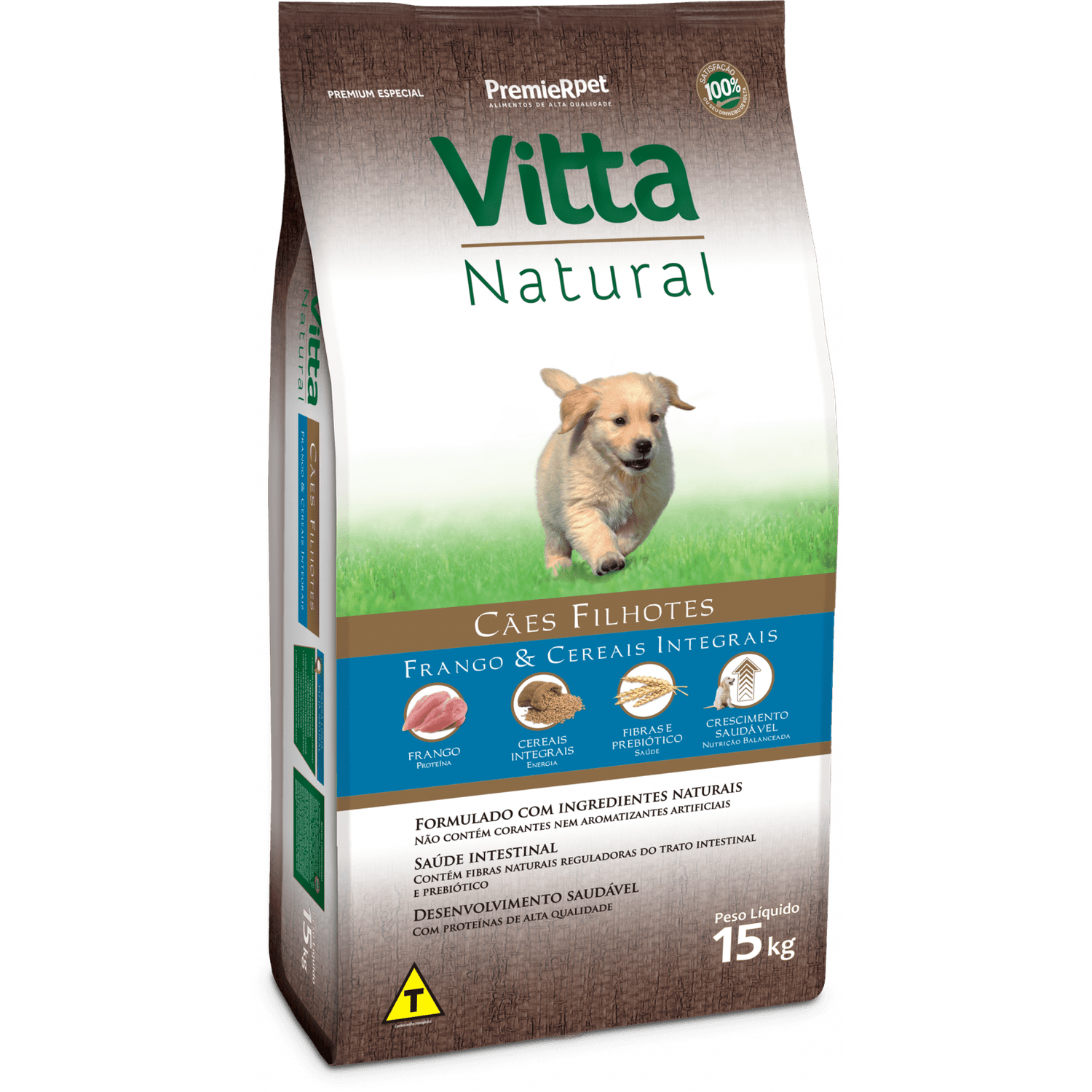 Elaborado com ingredientes naturais e cuidadosamente selecionados, o produto Vitta Natural Filhotes Frango e Cereais Integrais, além de muito saboroso, não possui corantes e aromatizantes artificiais. Promove também a saúde intestinal dos filhotes, através da associação de fibras naturais com prebiótico. Todos os cuidados necessários para um desenvolvimento pleno e saudável.